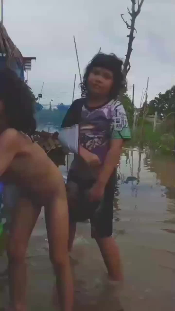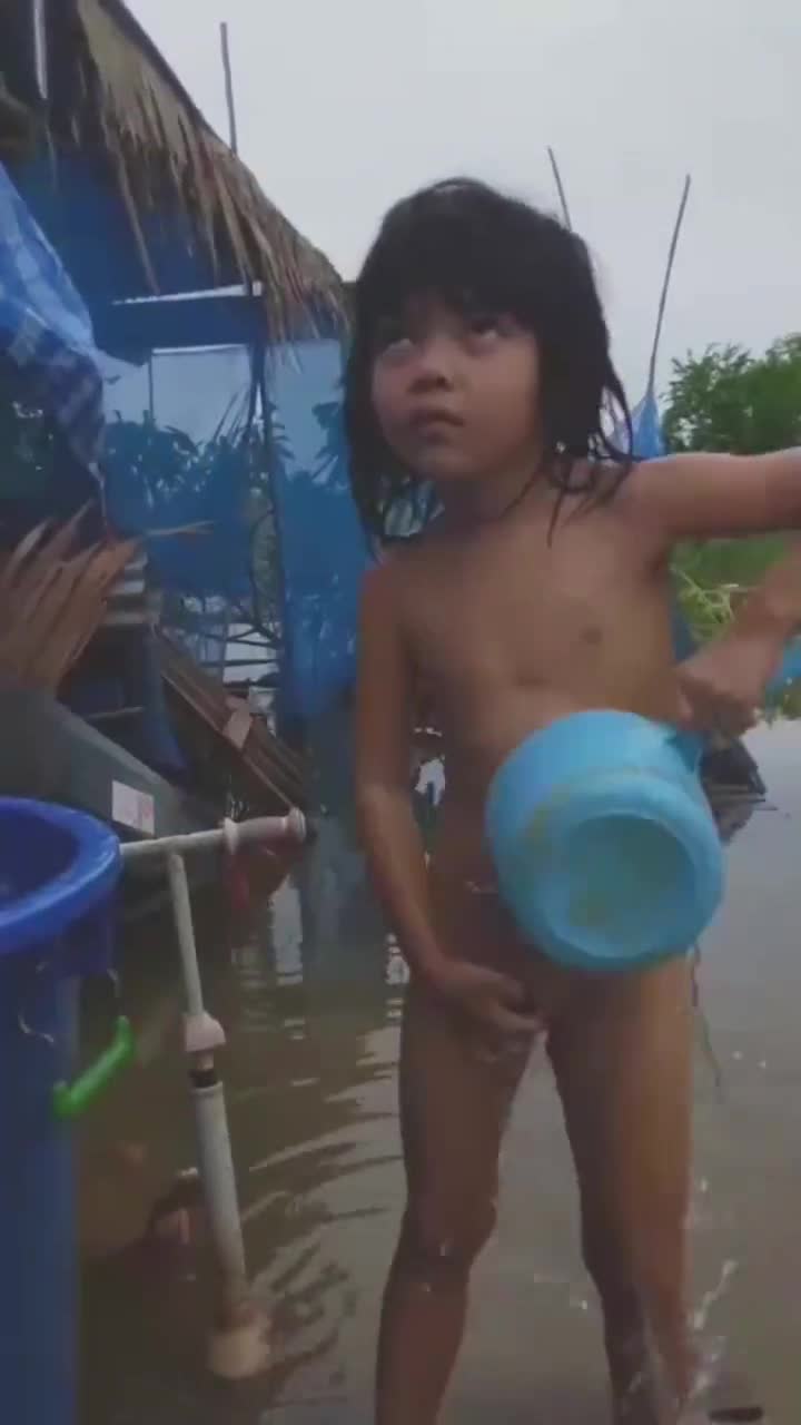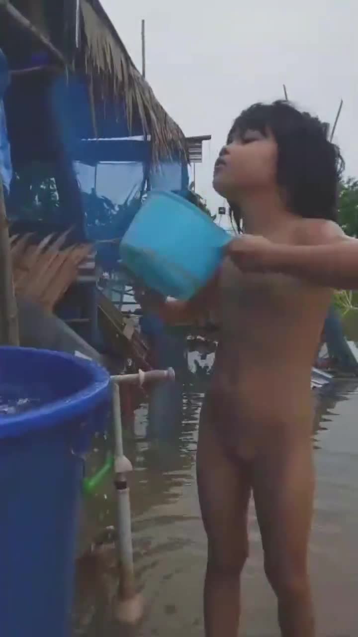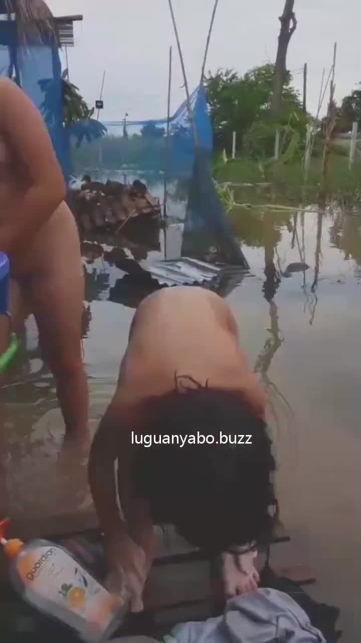 黑妹户外洗澡
