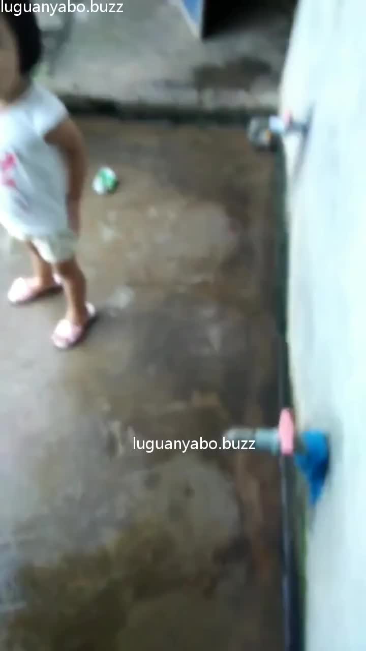 小女孩站着喷金水